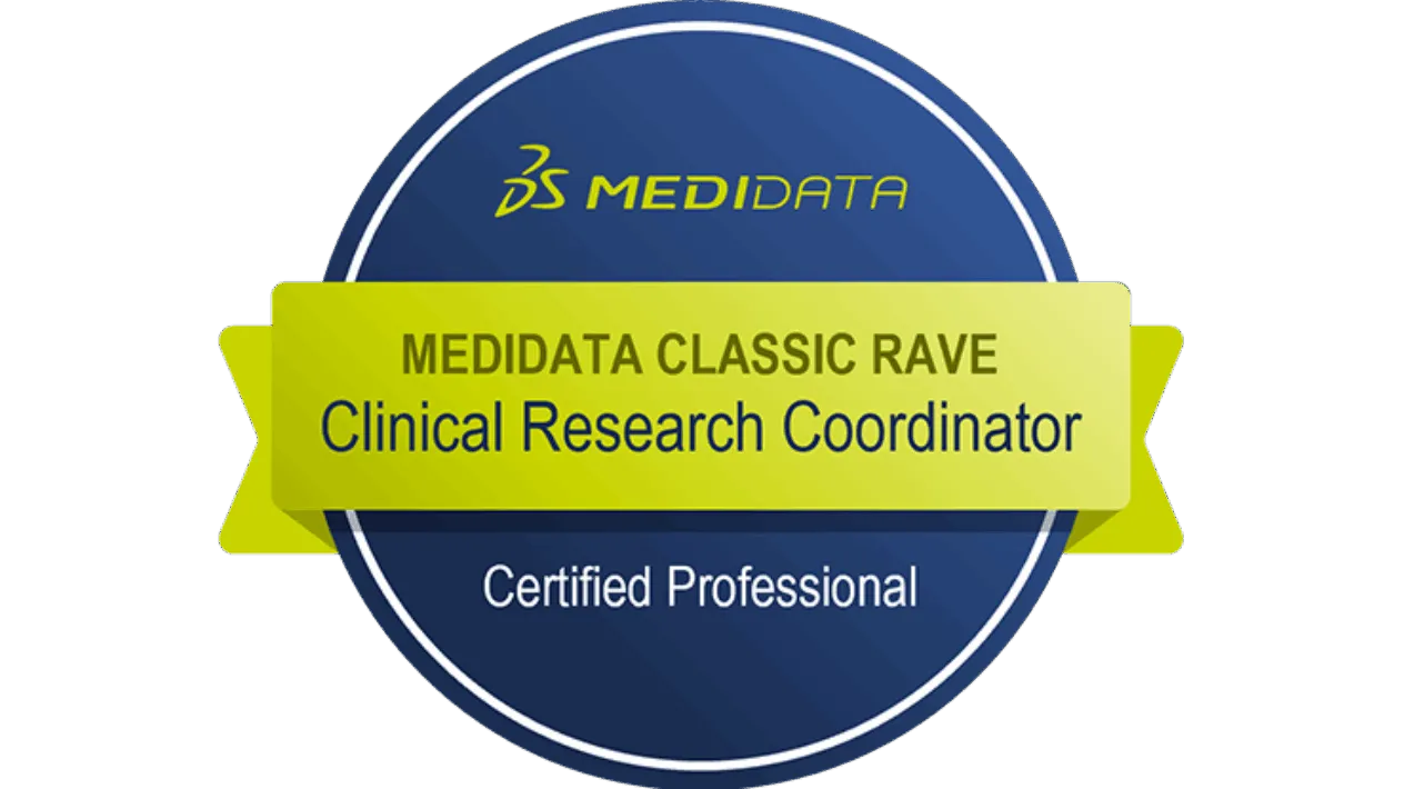 This certification validates Clinical Research Coordinator proficiency in commonly-performed Medidata Classic Rave tasks: navigation, data entry, and responding to queries.