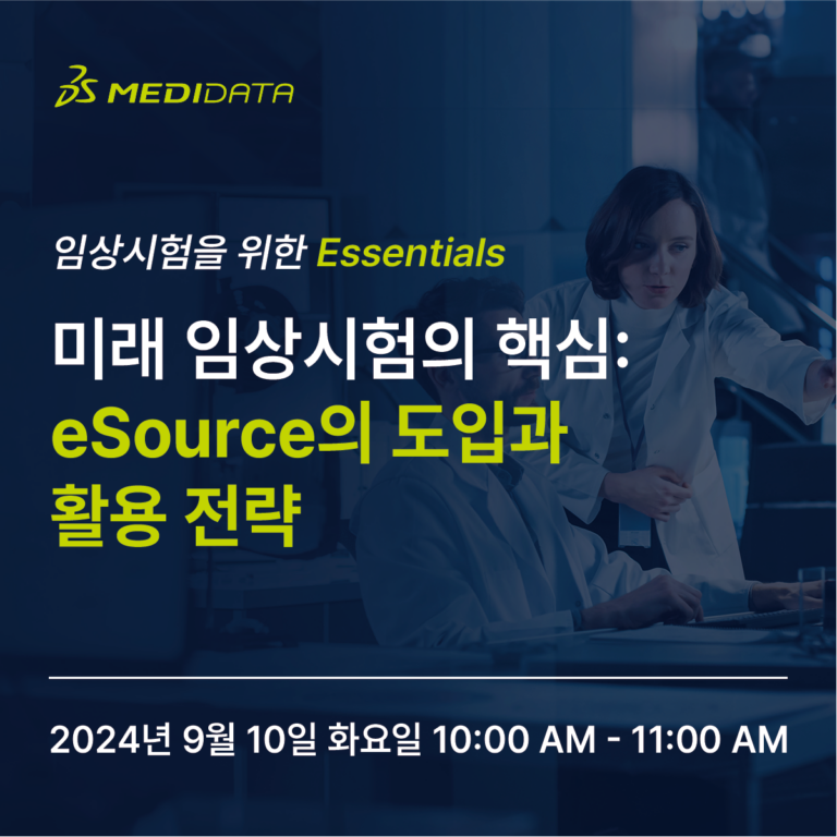 eSource는 메디데이터의 웨비나에서 자주 언급되었던 용어임에도 불구하고 여전히 아직은 생소한 개념입니다. 하지만 차세대 임상시험을 위해서는 절대 빼놓을 수 없는 eSource!