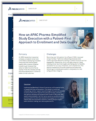 아시아태평양 지역의 한 제약회사가 중추신경계(CNS) 3상 임상시험을 어떻게 간소화했는지 확인해 보시기 바랍니다. AI 기반 솔루션인 Medidata Patient Experience를 통해 이 임상시험 의뢰사는 다음과 같은 결과를 기대할 수 있습니다.